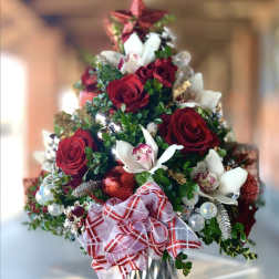 Price: $165.00Xmas Centerpiece - Roses, orchids, Christmas greens