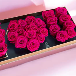Price: $350.00 I LOVE U in Hot Pink Roses that last over a year! - Rose Gold Product Tags: Next-day Delivery