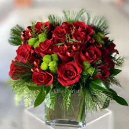 Price: $275.00 Let it Snow ! Festive Holiday Flowers in a White Ceramic Vase Product Tags: Next-day Delivery