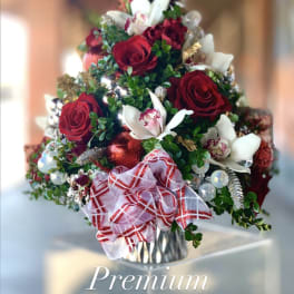 Price: $275.00 Let it Snow ! Festive Holiday Flowers in a White Ceramic Vase Product Tags: Next-day Delivery