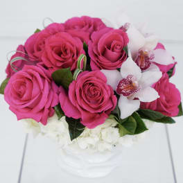 Price: $125.00Palos Verdes - Hot Pink Roses and Orchid Blooms