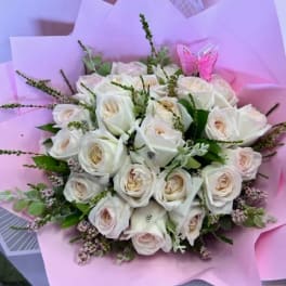 Price: $350.00I LOVE U in Soft White Roses that last over a year!