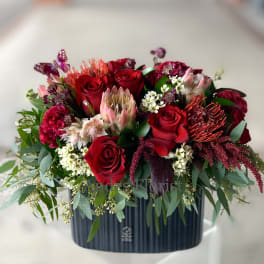 Price: $85.00 Lindsay - Roses, Cymbideums, Hydrangeas, Mixed Flowers in a Glass Vase Product Tags: Best seller Next-day Delivery