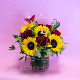 Price: $180.00Lucy - Grand Sunflowers and Roses
