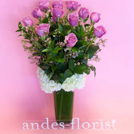 Price: $120.00Lana - Long Stem Lavender Roses in a Tall Vase