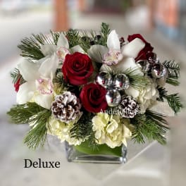 Price: $85.00 Lindsay - Roses, Cymbideums, Hydrangeas, Mixed Flowers in a Glass Vase Product Tags: Best seller Next-day Delivery